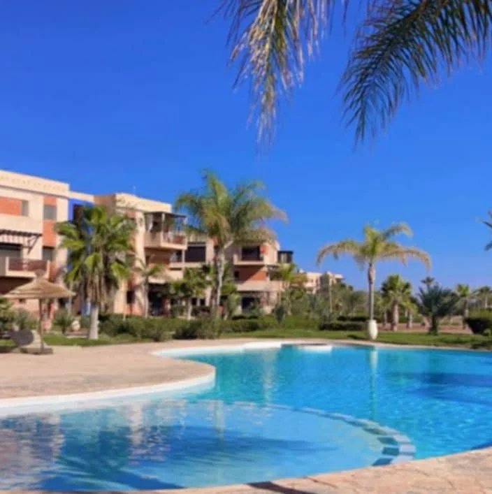 Magnifique appartement de 85 m² situé au 3ᵉ étage d'une résidence sécurisée avec trois piscines, sur la route de Casablanca à Marrakech.